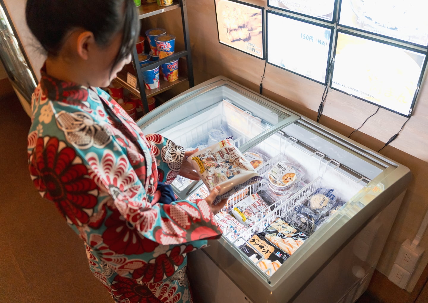 フロント横の売店では冷凍のお弁当をはじめ、冷凍食品の販売も行っております。